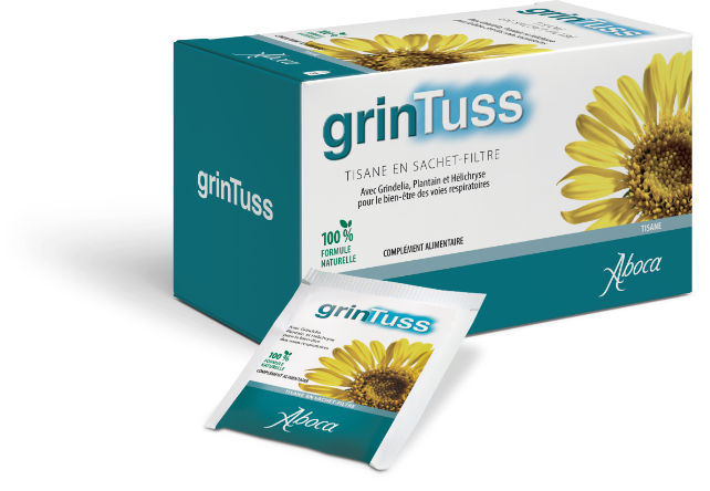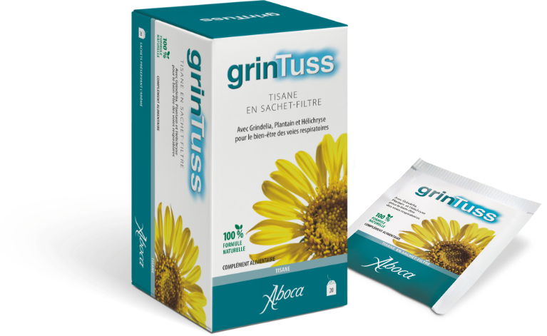 Grintuss tisane est un produit 100 % naturel qui exerce une action lénitive des voies aériennes supérieures grâce au